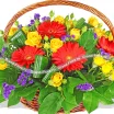 Очень красивая корзина была доставлена моей маме в Ставрополе. Корзина напоминает небольшую цветочную полянку на столе. Все очень качественно оформлено. Мама конечно не ожидала такого подарка и была приятно удивлена.